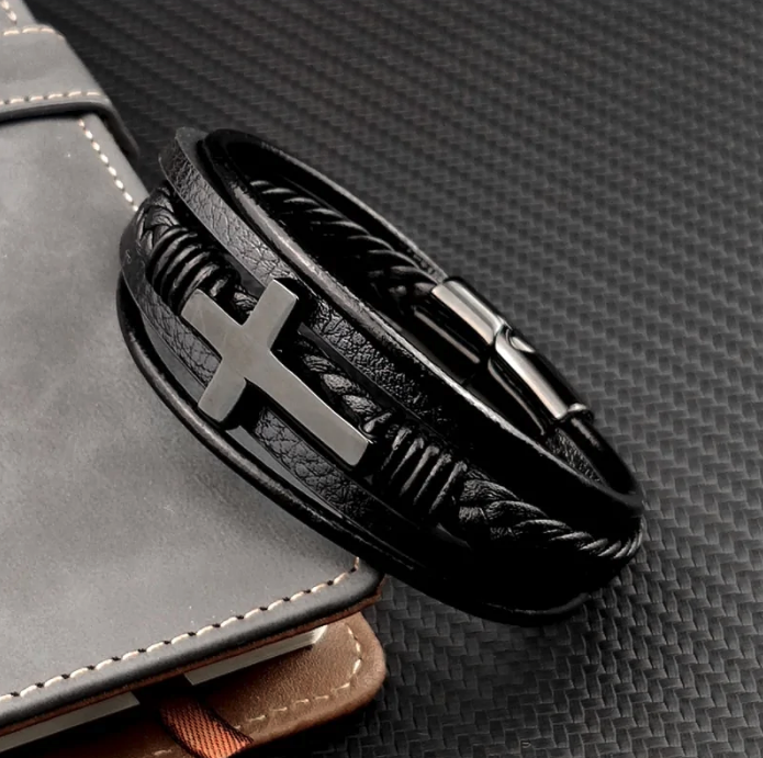 Bracelets Type: Charm Bracelets Gender: Men Metals Type: Stainless Steel Fine or Fashion: Fashion Style: Hyperbole Material: Leather Chain Type: Beaded Bracelet Item Type: Bracelets Shape\pattern: cross Model Number: cross bracelet Setting Type: None Clasp Type: Double-safety-clasps Package Including 1 Piece Bracelet Size: 18.5/20.5/22 cm (Please measure wrist size for purchase) Color: Black/Brown Style: Punk,Rock,Classic,Trendy,Romantic,Cool,